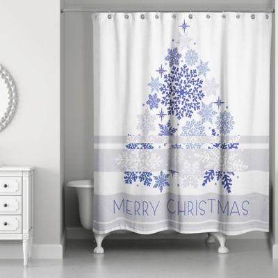 Elegant Blue Christmas Shower Curtain In White Blue Bed