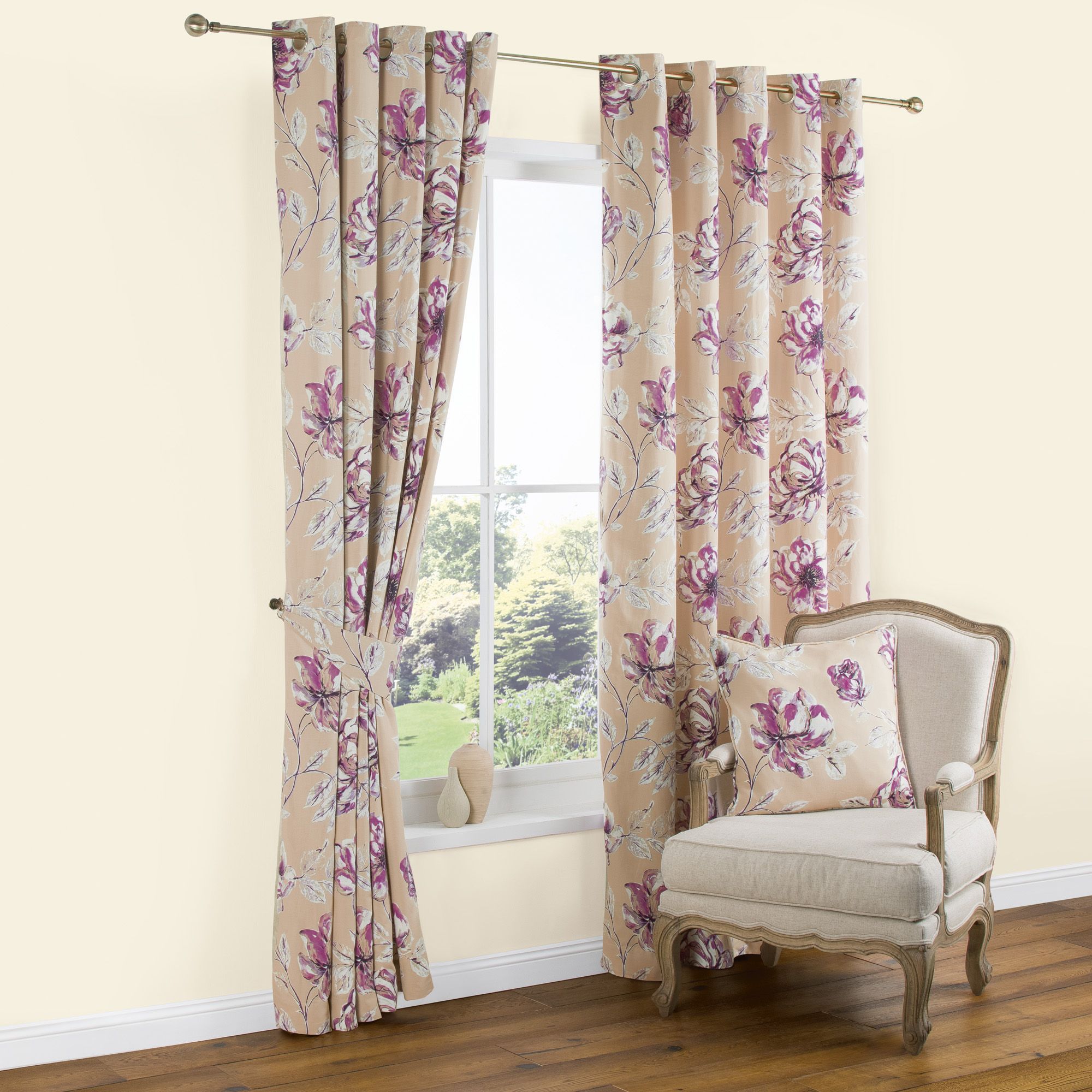 Calendula Cream Amp Purple Floral Printed Eyelet Lined