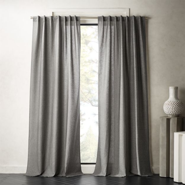 Pinstripe Grey White Curtain Panel Cb2