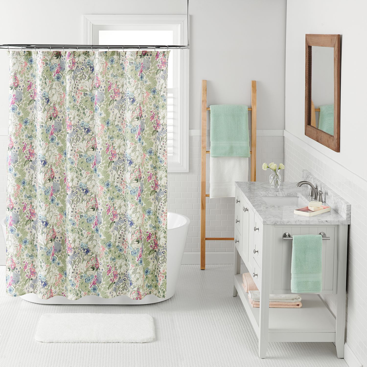One Home Brand Farmhouse Block Floral Print Shower Curtain