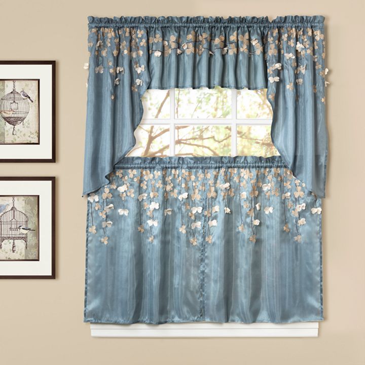 Lush Decor Flower Drops Swag Tier Kitchen Window Curtains