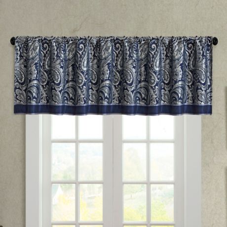 Madison Park Aubrey Jacquard Window Valance In Navy Bed