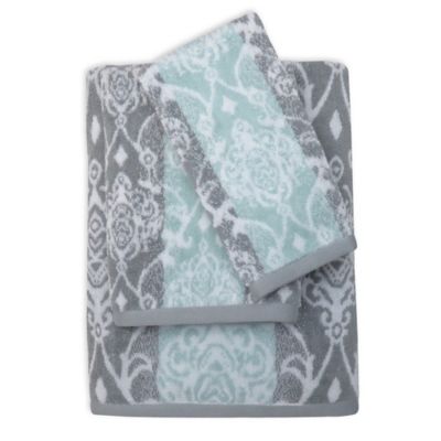 Watercolor Damask Hand Towel In Aqua Grey Bed Bath Amp Beyond